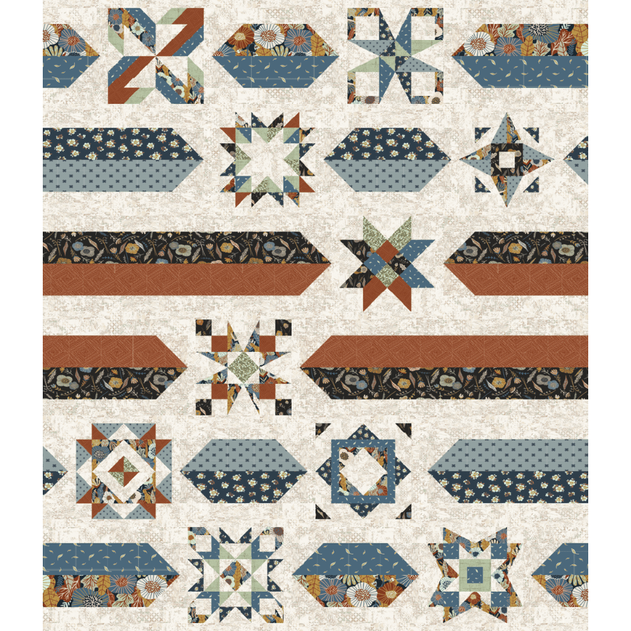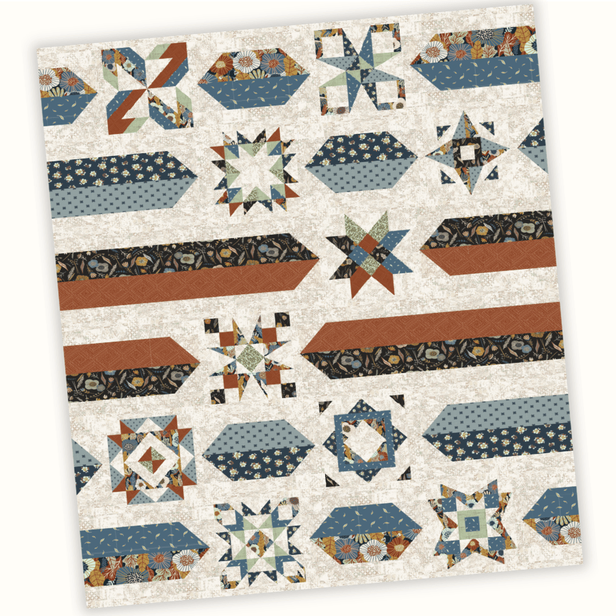 Show off your 2026 Build A Quilt blocks with the Layout 3 option for the Hidden Grove color way. Quilt measures 70″ x 81″