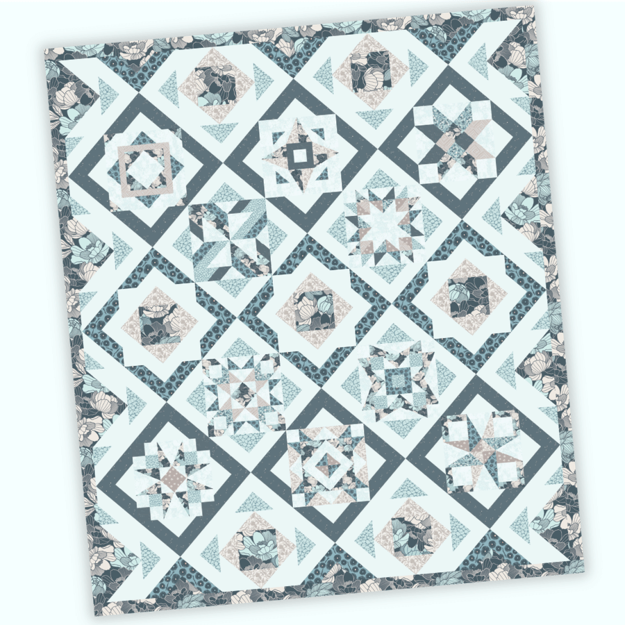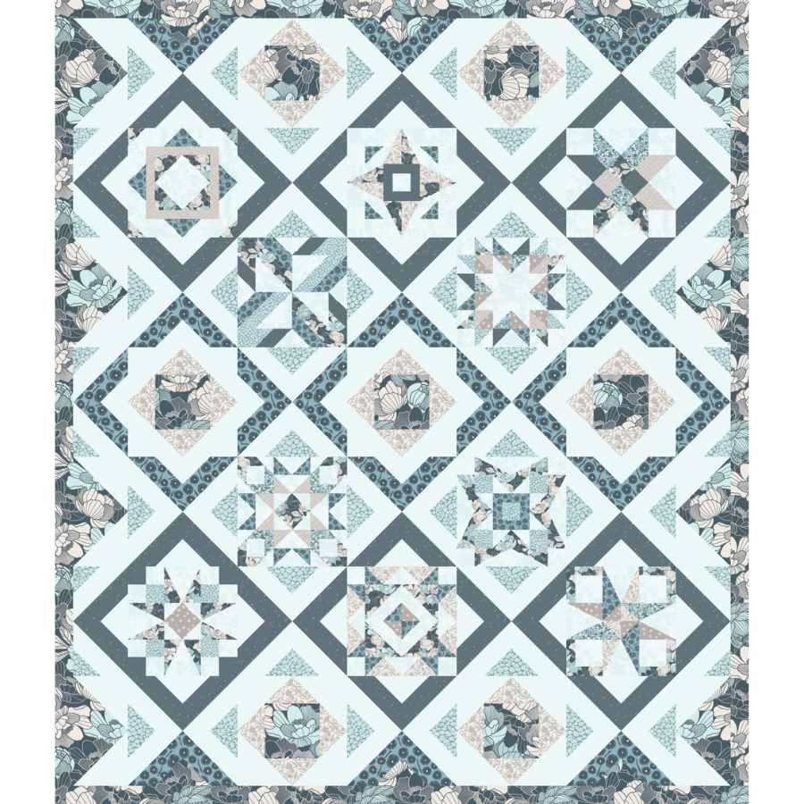 Show off your 2026 Build A Quilt blocks with the Layout 1 option for the Pebble and Petal color way. Quilt measures 76″ x 88″