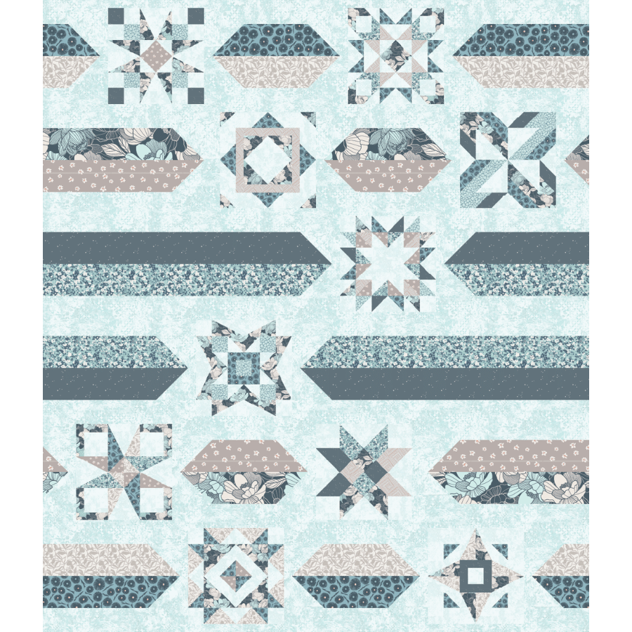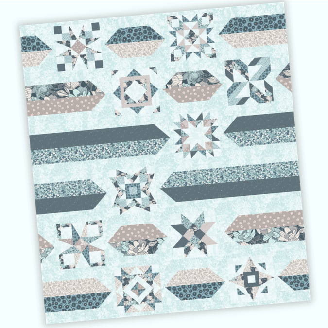 Show off your 2026 Build A Quilt blocks with the Layout 3 option for the Pebble and Petal color way. Quilt measures 70″ x 81″