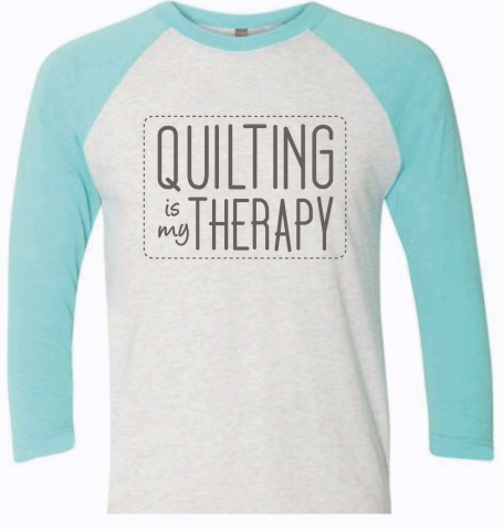 Hit it out of the ballpark with this super soft 3/4 sleeve Quilting Is My Therapy Baseball Shirt.